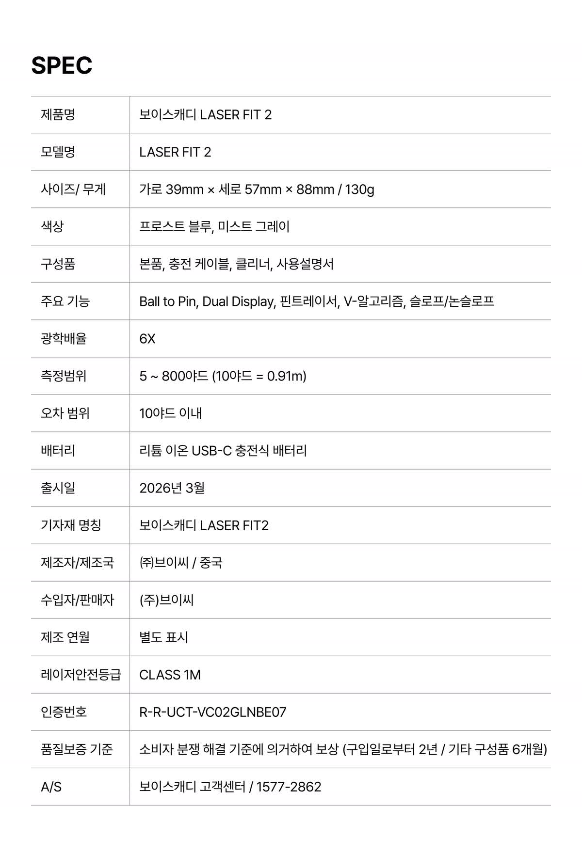 보이스캐디 Laser FIT 2 레이저핏2 골프 거리측정기 2color
